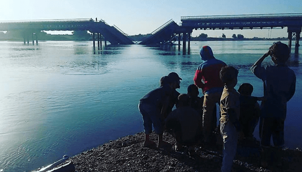 "Burning one's bridges" was always considered unwise as a means of defence, as it narrowed the options of escape; nowadays "bombing other's bridges" is the preferred option for keeping the enemy at bay. But whether defensive or offensive, destroying such expensive and vital structures has only been justifiable for military objectives.. until now! One can think of many many occasions in the last few decades, both in West Asia and Eastern Europe where military forces have destroyed bridges - in almost all cases where NATO planes have bombed bridges in order to contain their opponents. These may have been government forces or militias, or so-called terrorist groups like 'ISIS'. It has been an effective strategy, but in almost all cases the destruction of such vital links across rivers or to islands has also seriously affected and alienated local populations. It has also been the case that sometimes bridges have been bombed before the reason becomes clear - as for instance with the US bombing of bridges across the Euphrates in Eastern Syria in late 2016. That time, just after the liberation of Aleppo by the Syrian Arab Army, was apparently suitable for such vandalism; the old bridge across the Tigris in Mosul was also bombed then, as the US and local allies sought to control the movements of Iraqi resistance groups and the Syrian army - and take control of Syrian oil and gas resources in the 'jazeera' or island between the two rivers. The photo below from 2016 following the US bombing of a main bridge across the Euphrates at Deir Al Zour.
